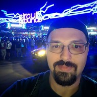Komrad Fluffy looks off into the distance whilst smiling at the thought of the scene he just spoke