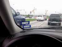 The car ahead has a ''l'm with Hillery'' sticker on it's bumper... l stay away from those vehicles as well..