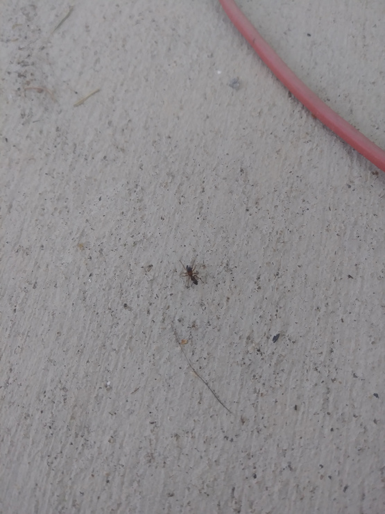 I found an ant mimic jumping spider today. I spotted it when I was bug hunting with my daughter. This is only the 3rd one I've seen in my life, but they are pretty much my favorite. Mostly because they combine my two favorite insects.. ants and jumping spiders. They're neat because they really do mimic ants. They have evolved to look like them and act like them. They'll pick up their front legs and wave them around and look like an ant with 6 legs and 2 antennae. If you're not paying special attention, you'd most likely mistake it for an ant at first.