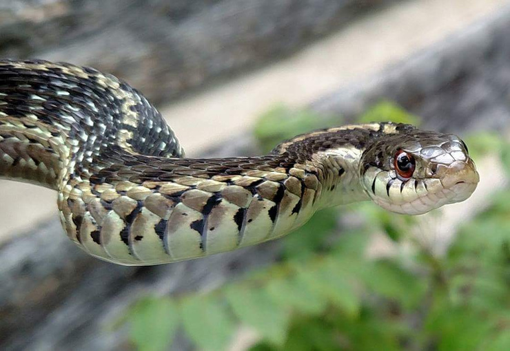 A pretty garter snake that lives under the front step of my house.