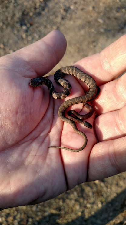 Baby snakes! ❤ A super tiny Storeria occipitomaculata (red-bellied snake) and Nerodia sipedon (northern watersnake).