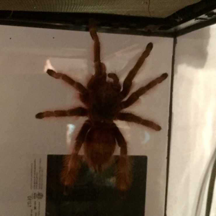 My Nhandu tripepii (Brazilian Giant ) Champagne is finally out and about. It’s been a strange winter and she had been hiding most of it, unusual for her. They can grow 7-9 inches. She’s getting there.