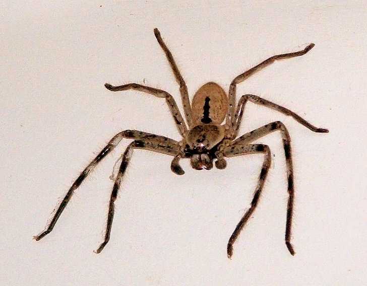 Australian huntsman spider. they are rather timid, with an erratic way of retreat if frightened, which then freaks people out. this one used to live behind one of my paintings. including legs he is roughly 10cm (4 inch) in diameter or a big palm ...