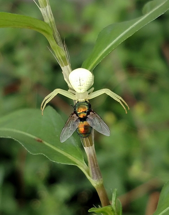Crab spider with green bottle fly