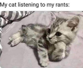 Shocking! Most kitties won’t give human rants the time of day! They are likely to act like “stop bellyaching and feed me “! Or more likely to have no reaction at all.