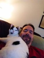 Posted by LaurenIt would be warmer for us both if he'd get on my lap, but it has to be his idea - though he still likes to stay close.