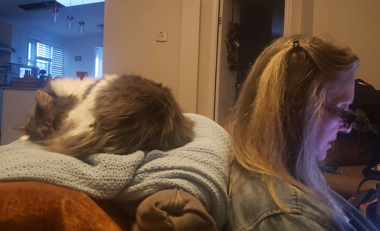 Posted by LaurenIt would be warmer for us both if he'd get on my lap, but it has to be his idea - though he still likes to stay close.