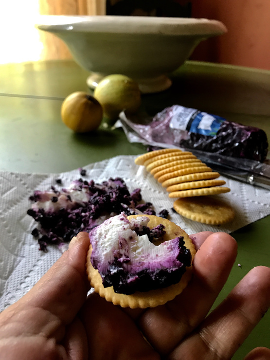 I’m currently ingesting and digesting a colorful, delicious, dandelion snack.. Blueberry vanilla goat cheese and crackers.. Goat cheese isn’t for everyone, but it’s absolutley for me. Have you had it? Do ya like it?