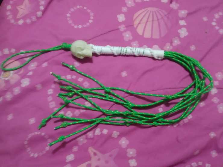 Posted by DesertkattHad fun tonight making some new floggers. Made a nice cat o nine tails. This one has a nice bite to it. Need a test subject!