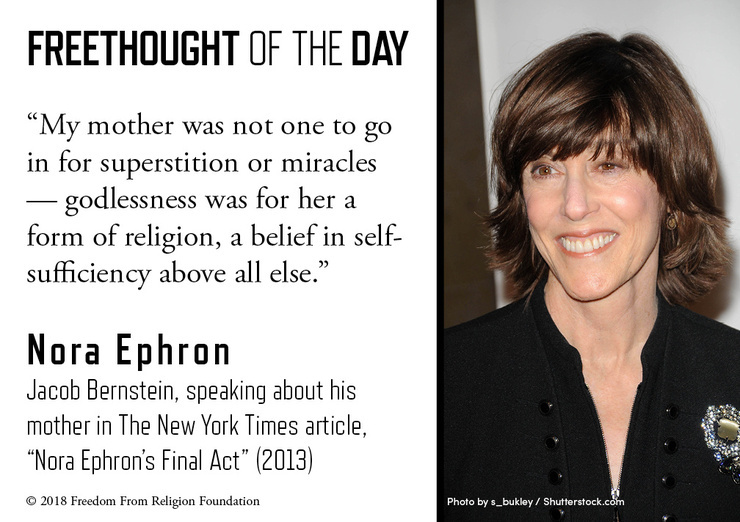 On this date in 1941, Nora Ephron was born in New York City, the eldest of four daughters of Phoebe (Wolkind) and Henry Ephron, Jewish screenwriters. She was named Nora after the protagonist in Henrik Ibsen‘s play “A Doll’s House” and grew up...