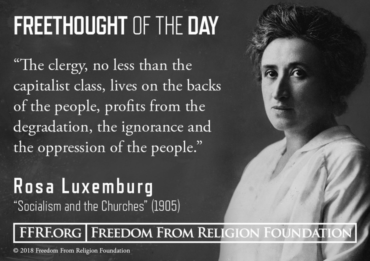 Posted by RobecologyA short-lived agnostic; Rosa Luxemburg was born March 5 1871. Here's her bio; [en.wikipedia.org] and here's her "Tweet" from FFRF;