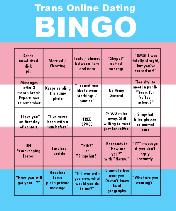 For everyone else stuck in the minefield of sex pests and scammers that is "Dating as Trans." I made this and stuck it on Facebook earlier today. Thought I might as well share here, too.