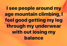 @FrayedBear For me it isn't so much the balance as the damage... My right hand has been broken a few times and I always set it myself, my knees are shot as are my shoulders, back and right elbow. I no longer have the strength to support my body in climbing and being hit by cars didn't help much either...