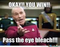 Sorry I do not get it....Billary bleached her subpoenaed cell phones and emails committing 33 thousand felonies. ...Agent Orange was is BLEACH attacking each cellulose cell in any living thing one by one rarely diluting much for weeks if not decades. ....Picard is my hero but never to poison my eyes
