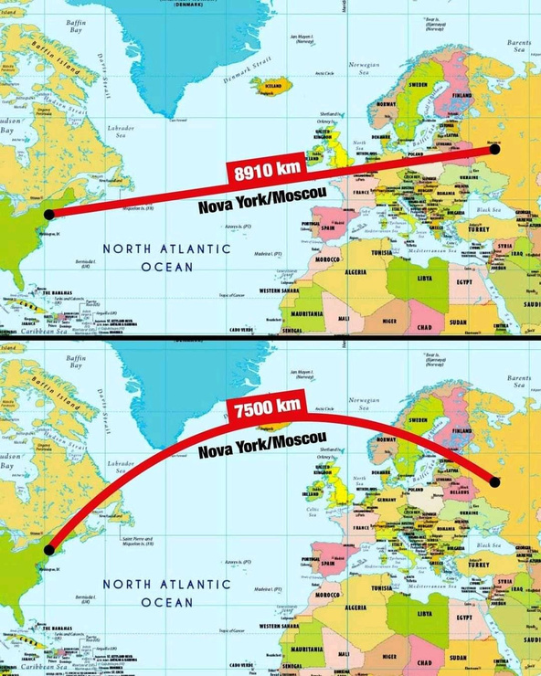 The shortest distance between two points is a straight line... Unless you are traveling on a the surface of a sphere.
