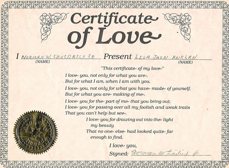 Posted by Huskygirl4everI remember when Norm gave this to me and the first time I ever read it I actually read my last name as Friedrich this is one of the things I will always cherish