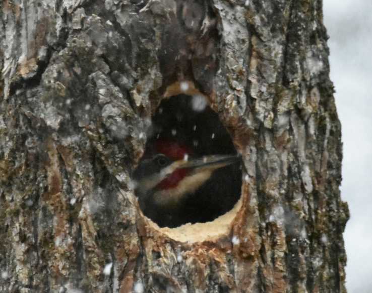 Back in April, I posted this pic of a male pileated woodpecker hunkered down during a snowstorm in a dead tree on the edge of my property. I had hoped that he was scoping out the place for a potential nest site. I've never seen the female pileated,...