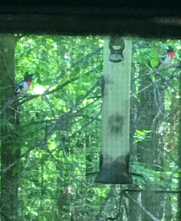 It's been a terrific spring for rare bird sightings in the SE US. I got a shot of a make Rose Breasted Grosbeak through my kitchen window. When I zoomed in to crop it, there was a SECOND Grosbeak that I had not even seen! Two-for-one!