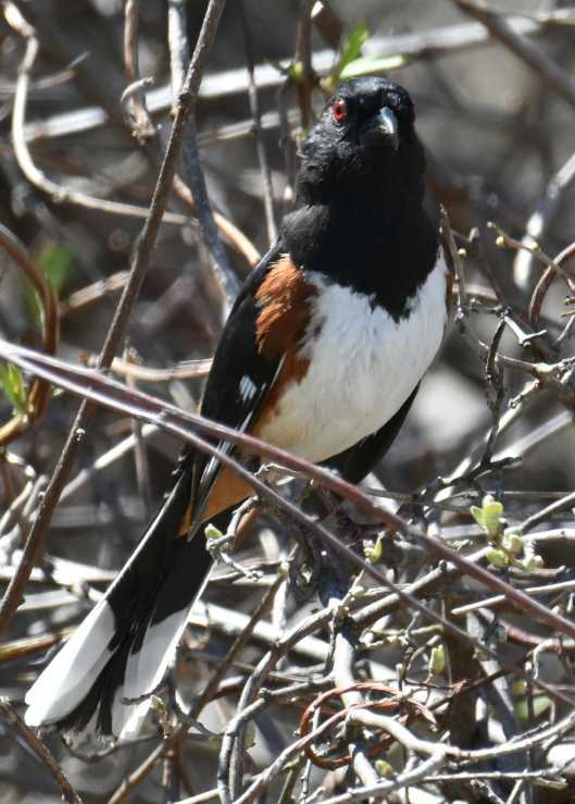 A very territorial Eastern towhee that has staked his claim at the bottom of my parents' driveway.