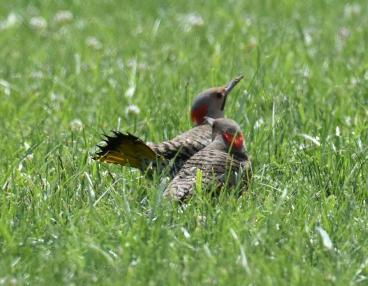 A pair of fledgling northern flickers that were out on the soccer field this morning.