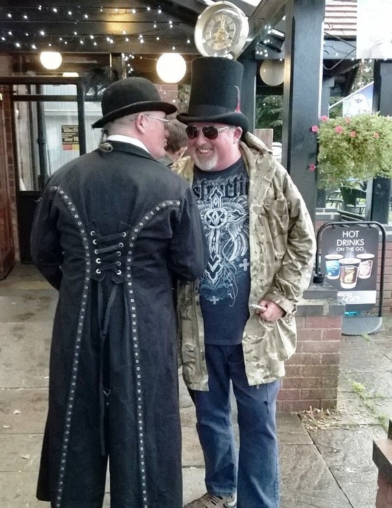 Bikers club on a steam punk night. I put forward the idea but only managed the hat and working clock on top of it. T-shirt was a bit steam punkish too. September 2017
