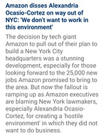 Is it really hostile to ask why a highly profitable corporation which doesn't even pay taxes shoudl get billions in subsidies and tax breaks? I think they pulled out because they wee being asked embarrassing questions. Like, "Why shoudl tax payers be subsidizing such a hugely profitable company?" Especially at a level where they (New York State) won't break even from all the giveaways for probably over 20 years? It will be hew Yorker's who pick up the bill for those giveaways.