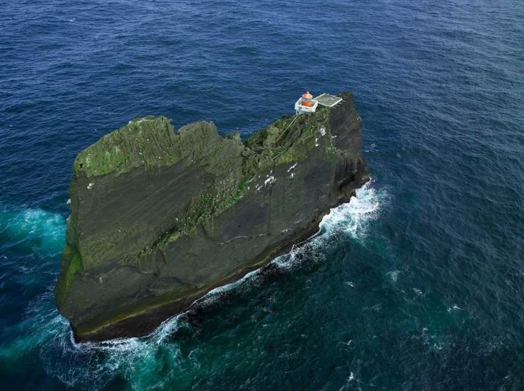 A strange location with mystery and wonder.The lighthouse, Þrídrangaviti, is located in the Westman Islands and is located around six miles from the shore. It's quite possibly the most isolated lighthouse in the world and is precariously perched on top of a rock pillar with the wild waves of the cold North Atlantic ocean raging below.