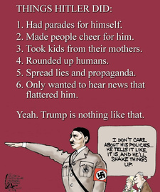 Those around me say Trump tells it like it is and he is shaking things up. They should be ashamed. Trump is a liar and a conman. He does NOT tell it like it is. He tells you what he wants you to believe. Way too many believe it. Call them on any of it and immediately the talk comes again to Hillary and Obama. What is wrong here is that these people do not know how to defend their strongman. Do not be distracted or misled.