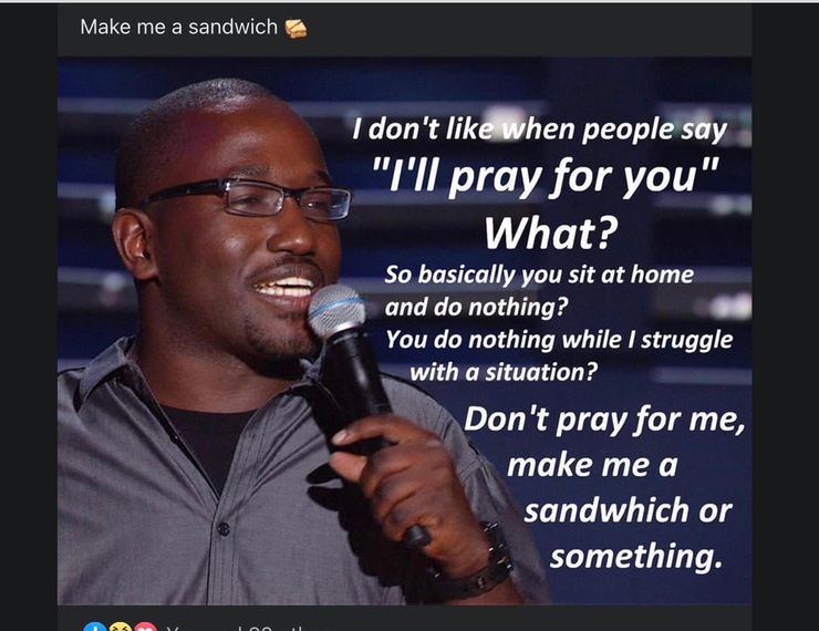 A sandwich will satisfy hunger but a prayer will only satisfy blind faith