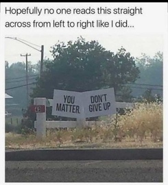 And read in reverse it could be. "Don't you give up, matter."
